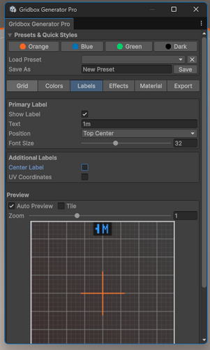 - Create, preview, export and apply grid textures and materials